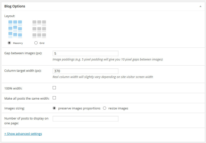 Fig. 1. Blog options : masonry