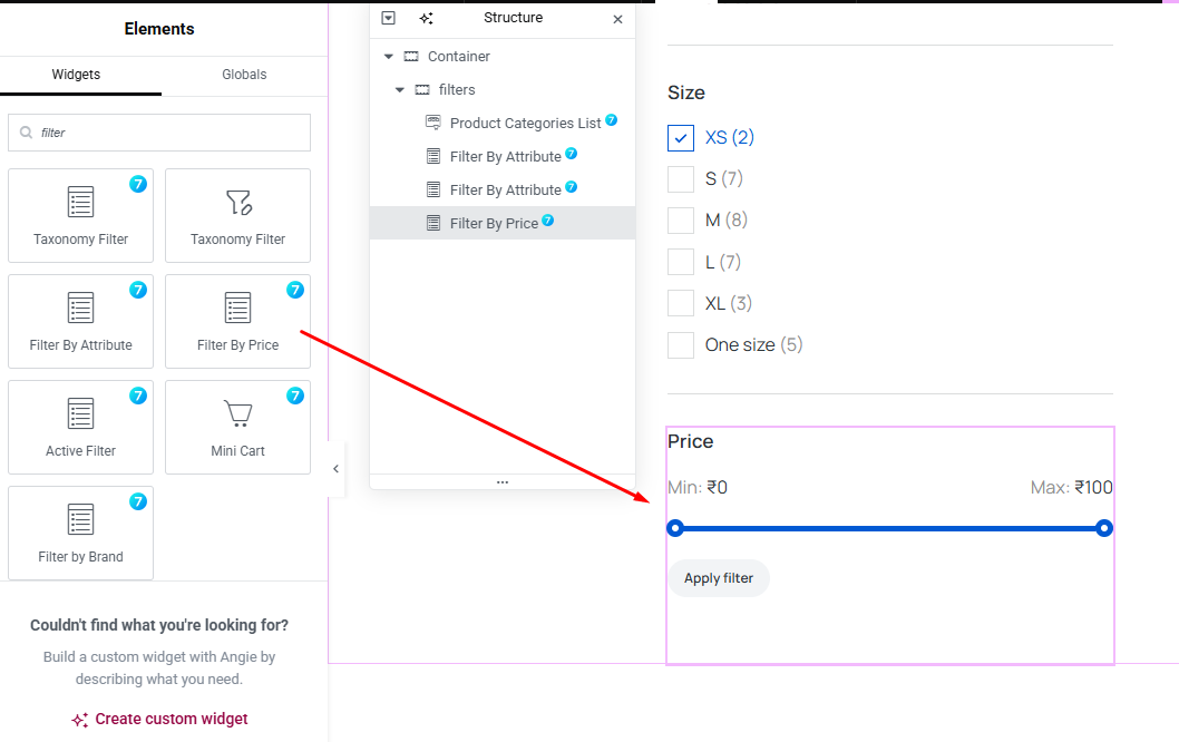 Filter By Price widget (fig.1) allows to insert live price filter for your woocommerce shop page.
