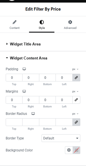 “Widget Content Area” tab allows to adjust appearance of the area behind the widget (fig. 2.1). In particular paddings, margins, borders and background color.