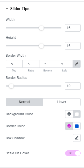 “Slider Tips Area” tab (fig. 2.3) allows to adjust the appearance of two Slider tips such as: