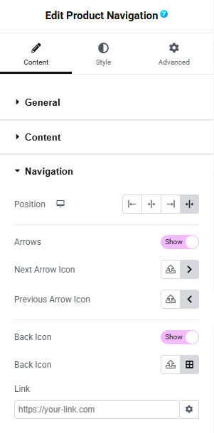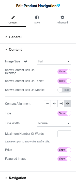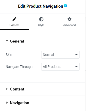 Fig. 2 The7 Product Navigation Content Tab General Settings