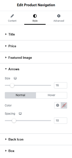 The Style Tab Arrows Settings gives the ability to set the appearance of the navigation arrows