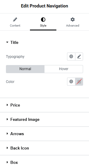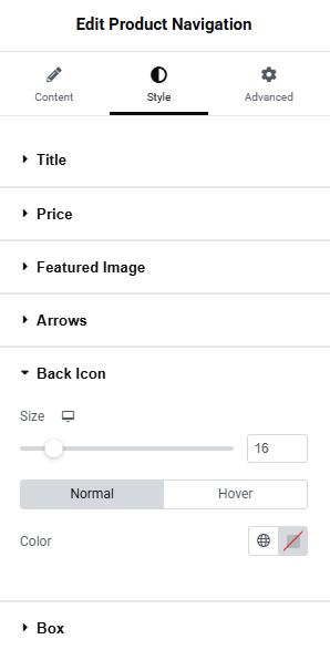 The Style Tab Back Icon Settings gives the ability to set the appearance of the back icon