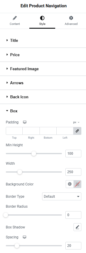 The Style Tab Back Icon Settings gives the ability to set the appearance of the whole box