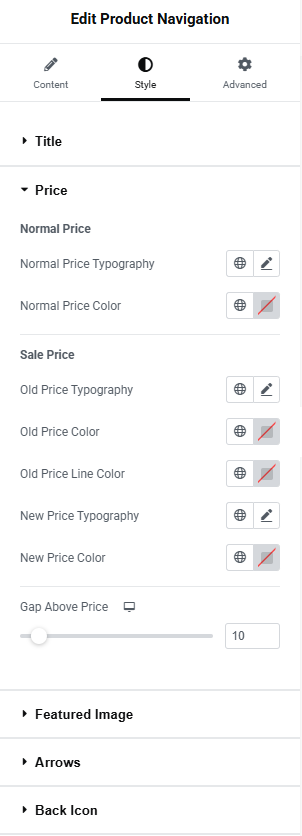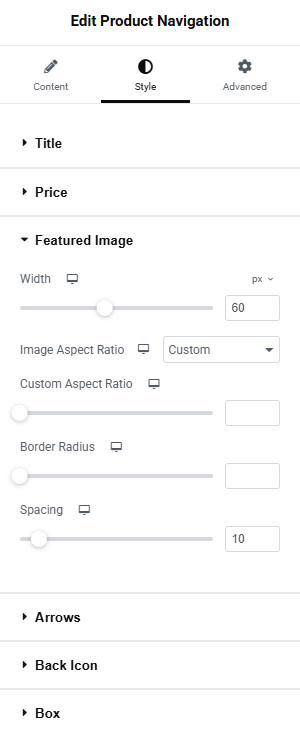The Style Tab Featured Image Settings gives the ability to set the appearance of the featured image of the product.
