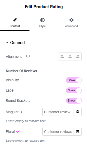 - Text Label when there’s single review (leave empty to hide)
