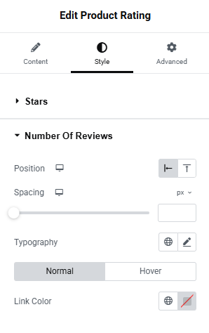 - Color (Normal/Hover) – the number is a link that leads to list of reviews