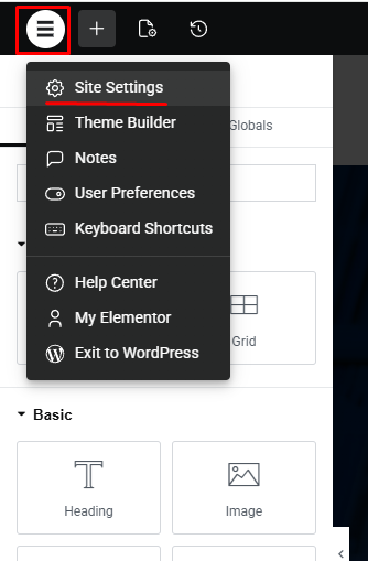 When using Elementor, you can reach compact theme settings block under the “Site Settings” menu (fig. 1.1 – 1.2):