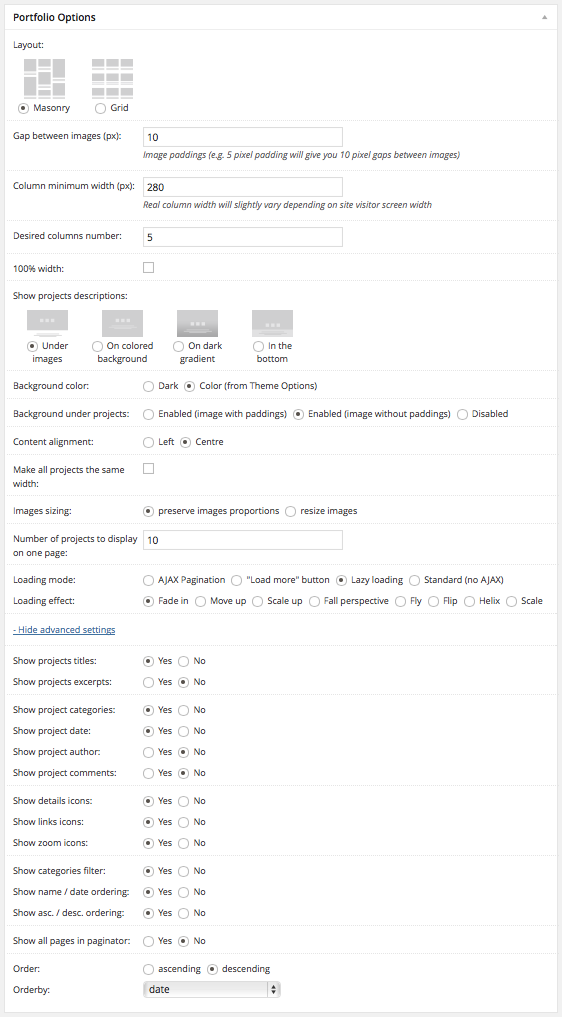 Portfolio options – list