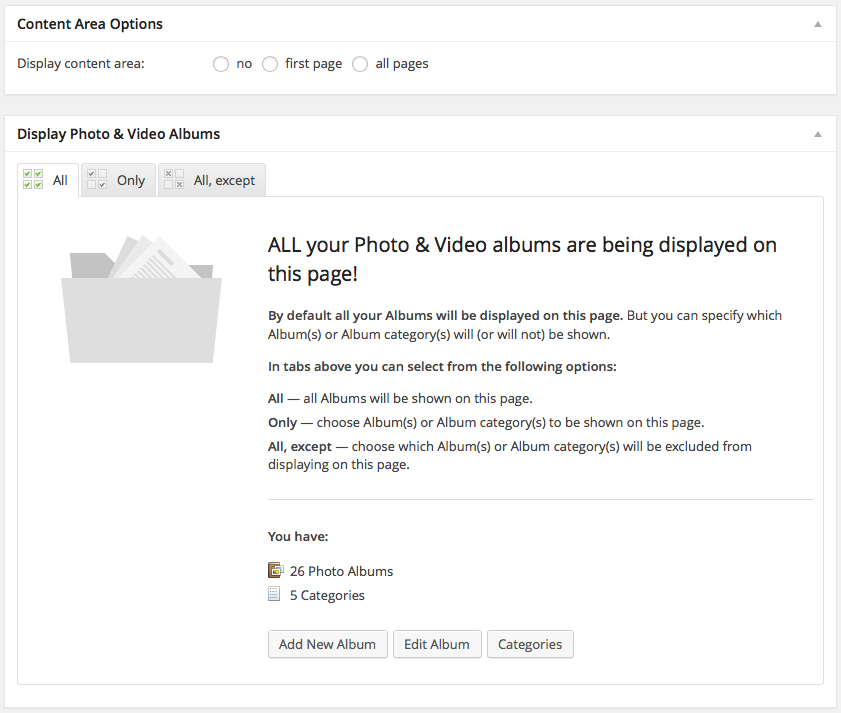 Albums. Content Area Options and Display Photo & Video Albums. ← Previous Next → Fig. 1. Albums. Content Area Options and Display Photo & Video Albums.