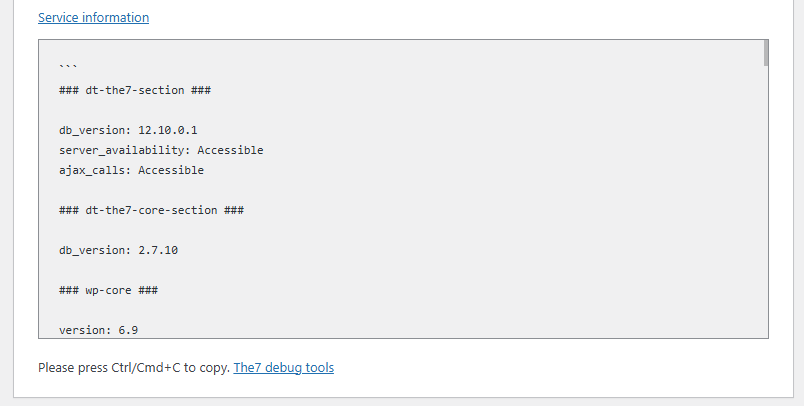 Furthermore, from there you can go to The7 Debug Tools section, which contains a few useful tools for developers.