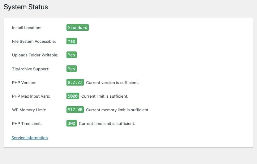 There is also a link to Service information on the bottom. The link is useful for contact with our Support.